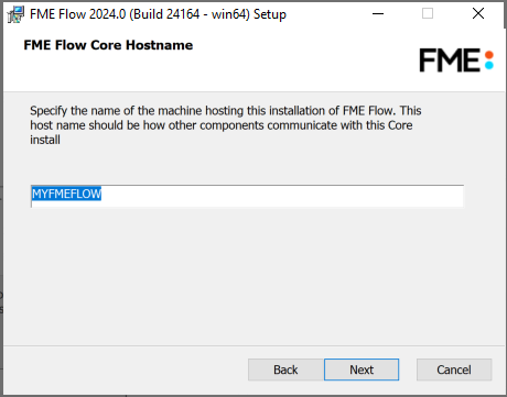 Specify the name of the machine hosting this installation of FME Flow.