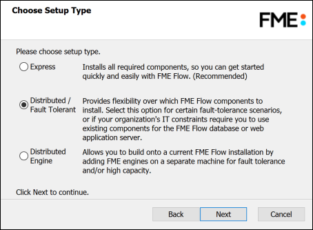 Select the Distributed/Fault Tolerant install option.