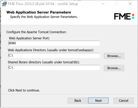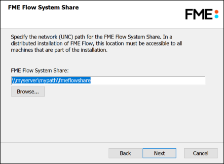 Specify the installation directory for FME Flow. Do not specify a UNC path.