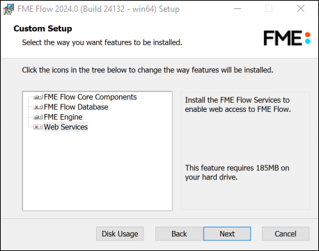 Select FME Flow Core Components and FME Engine. Do not select FME Flow Web Services.
