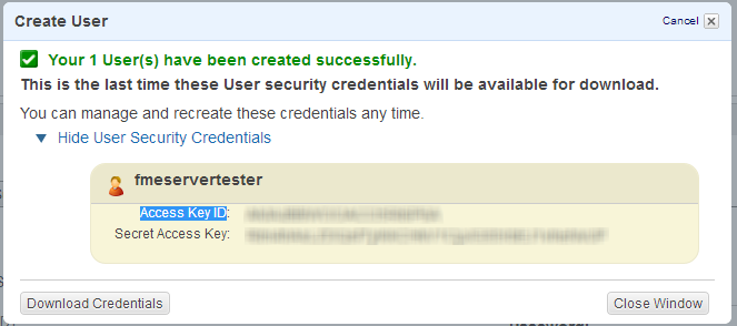 - In the next dialog, click Show User Security Credentials to see your Access Key ID and Secret Access Key. Once this dialog is closed, there is no way to retrieve your Secret Access Key, so we recommend that you first click Download Credentials to download your credentials to a secure location.